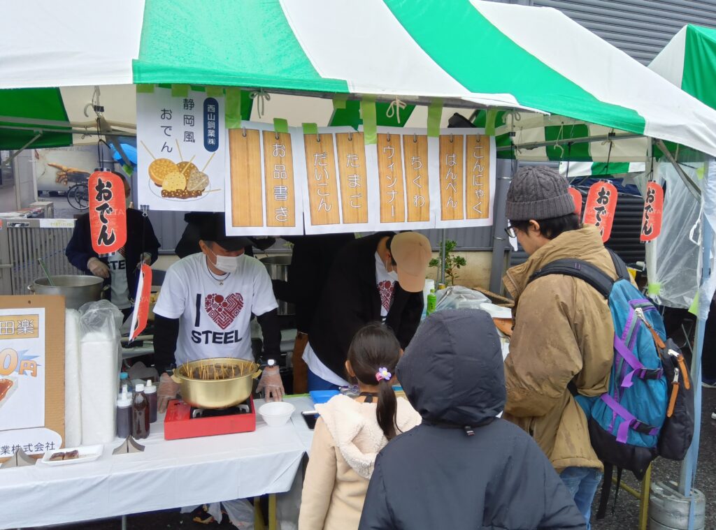 当社は静岡風おでんと味噌田楽の模擬店を出店し、おかげさまでご好評により目標の300食を完売することができました。